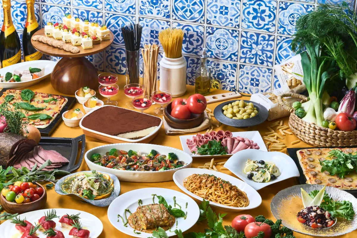 この特別ブッフェのメニューには、ラザーニャやニョッキ、ピッツァといった人気のイタリア料理が並ぶほか、トマトで深く煮込んだタコ料理「ポルポ・アッフォガート」、京都産のもち豚を使用した「ボッリート」などの創作料理も取り入れられ、まるでイタリアを旅しているかのような食体験が楽しめます。
