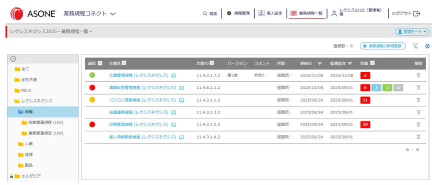 ASONE業務規程コネクトは、社内文書管理のデジタルトランスフォーメーションを促進し、企業が直面する法的な課題への対応をスムーズに行うための素晴らしいツールとなっています。詳しい情報は