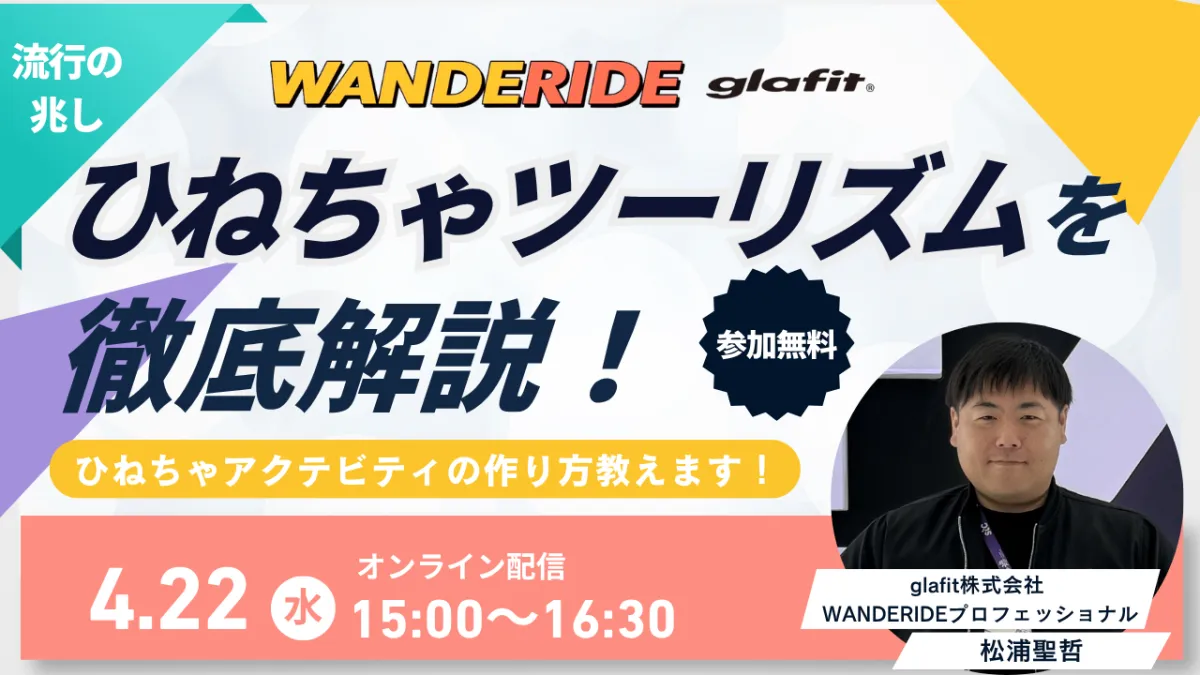 観光関連の業界人にとって、今、注目すべきセミナーが迫っています。glafit株式会社が主催する「ひねちゃツーリズム」に関する無料ウェビナーが、2026年4月22日(水)の午後3時から開催されます。このウェビナーでは、同社が開発した特定小型原動機付自転車「NFR-01 Pro+」を基にした新たな観光のスタイルについて、徹底的に解説される予定です。