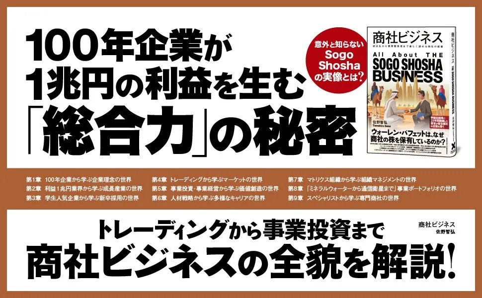 この新刊は、商社が100年以上にわたり成長を続け、1兆円の利益を生む背景にある要因についても触れています。「企業理念」「自己変革」「グローバル」「人的資本」の4つの要因が商社の成功の礎となっていることが強調されています。そして、これらは「ビジネスモデル」「事業領域」「アセット」「リスクマネジメント」「人財」による総合力を形成し、他業界では真似できない優位性を生み出しています。