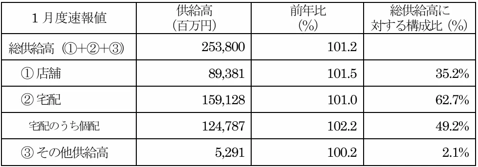 供給高の各項目は小数第二位で四捨五入されており、供給高が百万円未満である場合には切り捨てられることがあります。このため、総供給高と内訳の合計が一致しない場合もあるため、データを解釈する際にはこの点に留意が必要です。