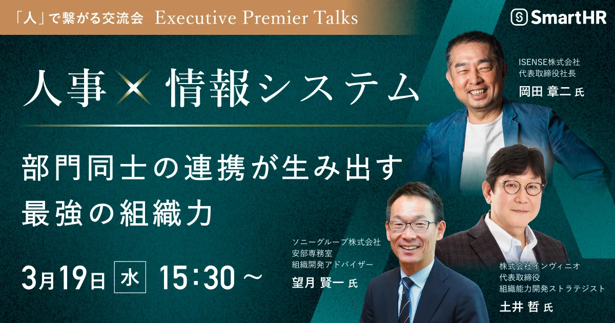 イベントでは、人事部門と情報システム部門の連携が企業の競争力をどのように高めるかというテーマで、著名なゲストスピーカーを迎えて行われます。具体的には、ソニーグループ株式会社の望月賢一氏と、ISENSE株式会社の岡田章二氏が登壇し、それぞれの専門知識を元に議論が展開されます。