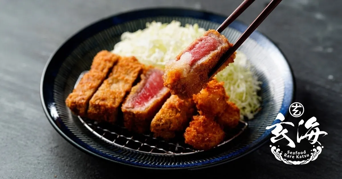 「玄海」では、従来の海鮮丼に加え、新たに「海鮮レアカツ」という料理が登場します。これは、日本の伝統的な料理スタイルであるカツに、魚の新たな魅力を融合させた逸品です。このレアカツは、外は香ばしくサクサクしながらも、内部はしっとりとした食感で、まるで刺身のような新鮮さを感じさせます。