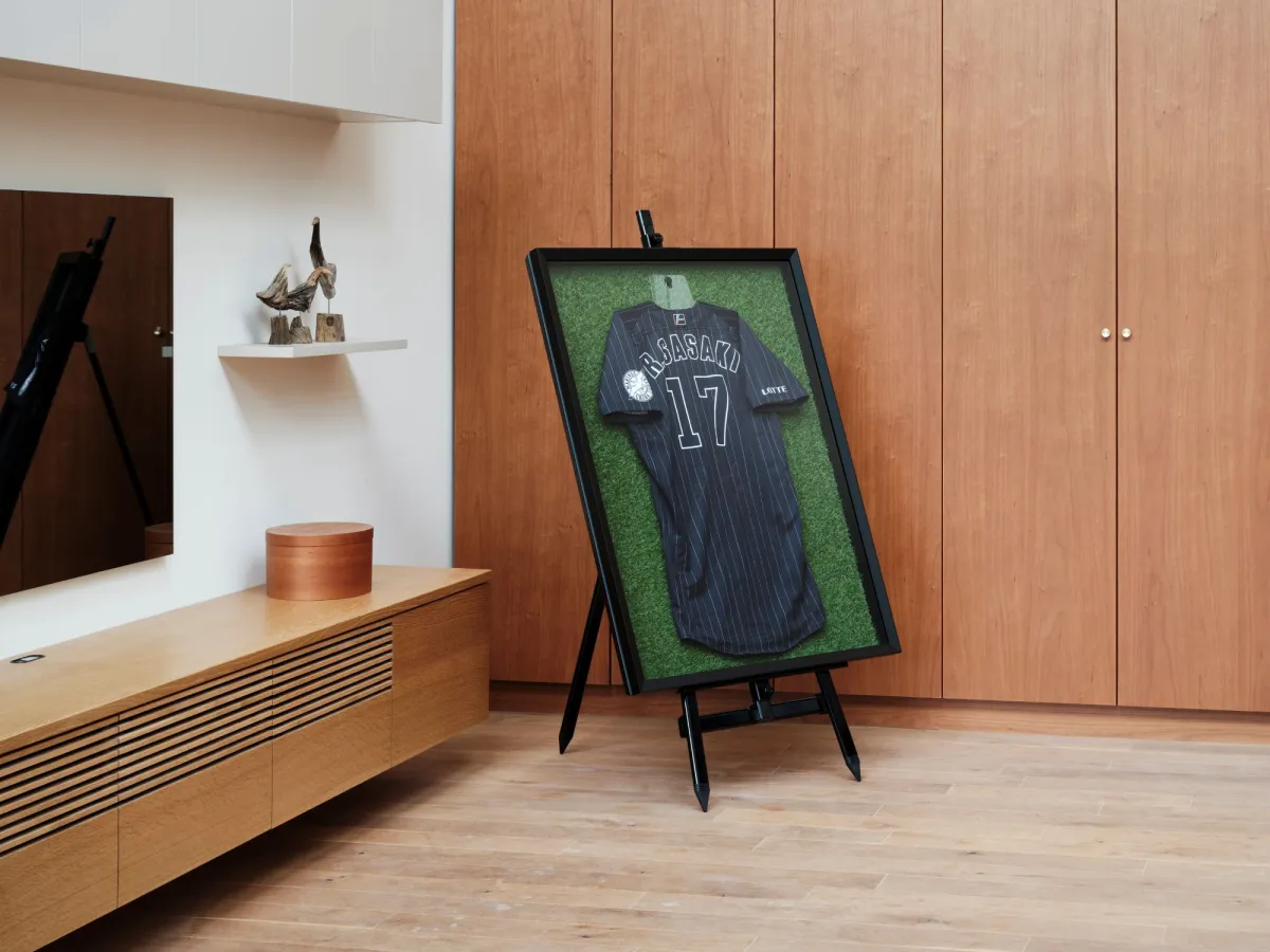 表面には高級感あふれるマット調の加工が施され、ユニフォームをより格調高く演出します。これにより、単なる額装としてだけでなく、インテリアとしての完成度も高まっています。