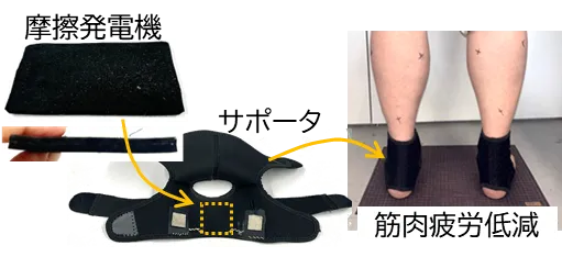 従来のマイクロカレント技術においては、外部からの電源が必須でした。しかし、研究チームは摩擦発電を取り入れることで、外部電源を必要としないサポーターという新たな形を実現しました。この技術は、柔軟なフィルムを用いることで、サポーター内に組み込まれており、運動するたびに自然に電気が生成される仕組みになっています。これにより、スポーツ活動や日常生活においても、身体の動きに応じて電流が流れるため、筋肉に効果的に働きかけます。