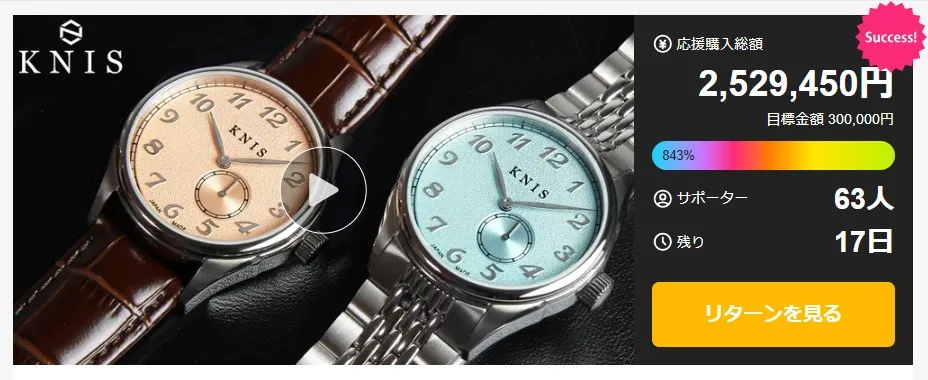 株式会社LIMEが手掛ける機械式腕時計「KNIS」が、クラウドファンディングプラットフォーム「マクアケ」で目標金額の800%を超える支援を集めて大成功を収めました。これは、クラウドファンディングの中でも特に珍しい成果です。このプロジェクトは、京都の伝統を感じさせる意匠と高い製造技術が見事に融合した商品で、多くの人々の注目を集めています。