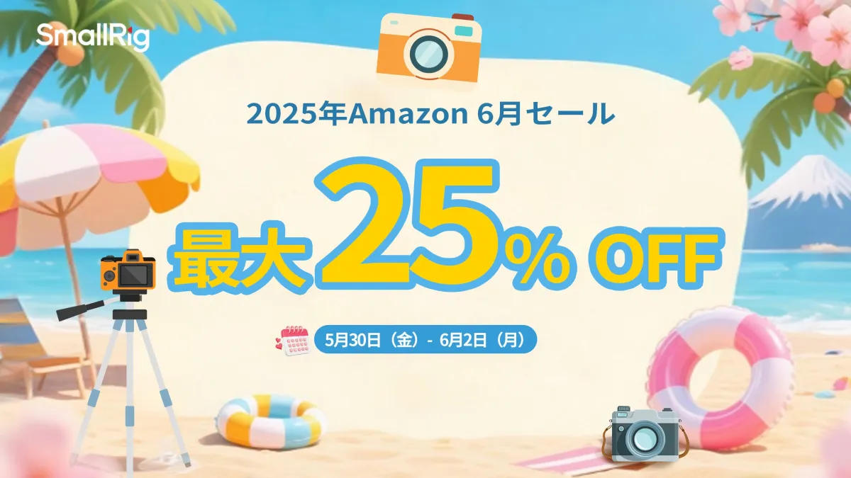 2025年5月30日から6月2日の期間中、Amazonが開催する特別セールに参加するのは、撮影機器のブランド、SmallRigです。特にビデオライトやVマウントバッテリー、様々な三脚が最大25%オフで手に入るチャンスです。