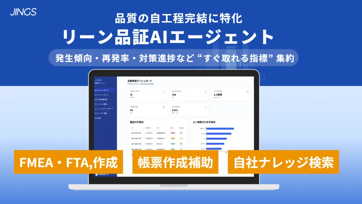 株式会社JINGS(本社:東京都文京区、代表取締役:三上 春香)は、製造業の品質管理と保証を効率化する「リーンAIエージェント」の提供を開始しました。この革新的なサービスは、品質に関する情報を迅速に検索、要約し、皆様の業務を支援します。デジタル化が遅れている製造業に新たな風を送り込むこのAIエージェントの特長と利点について掘り下げていきます。