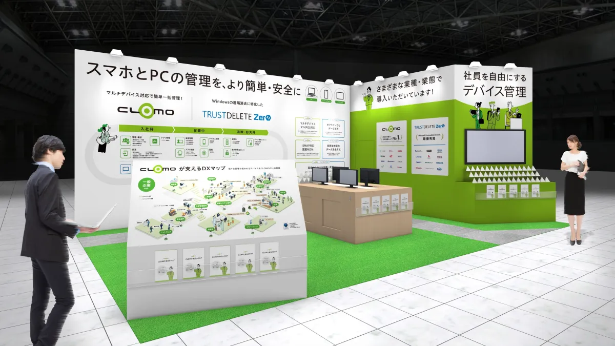 - - CLOMO MDMの管理画面やその運用イメージを展示し、デモも実施します。