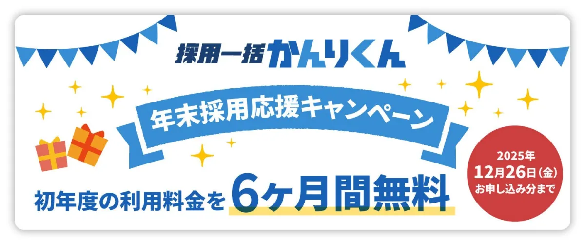 HRクラウド株式会社は、2025年12月26日までの期間限定で、「採用一括かんりくん」を利用する企業向けの「年末採用応援キャンペーン」を実施します。このキャンペーンでは、指定期間内に申し込みを行った企業に対して、初年度の利用料金を6ヶ月間無料で提供するという特典があります。
