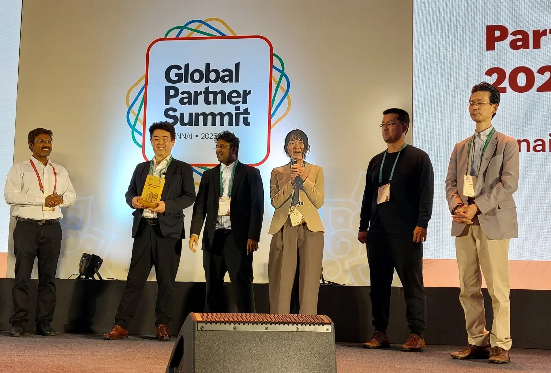表彰式には、Zoho Japanの代表取締役社長Manikandan Thangaraj氏や、船井総研HDの執行役員やシニアマネージャーが出席し、グローバルなネットワークの中で手を組む重要性について語られました。特に、船井総研HDは、Zohoが提供するビジネスアプリケーション「Zoho One」を利用し、多くの顧客企業の業務効率化や生産性向上に寄与した点が評価されました。