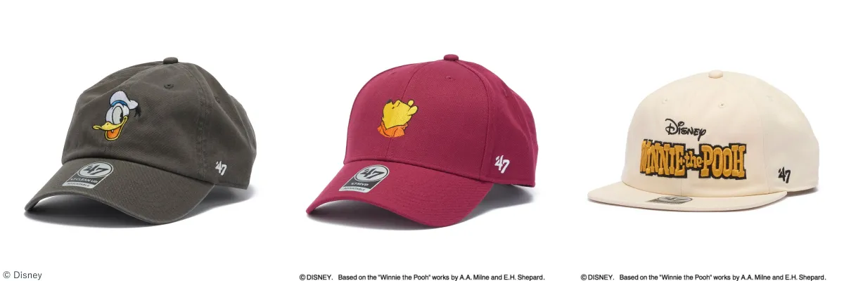 1947年にアメリカのボストンで誕生したカジュアルライフスタイルブランド、'47(フォーティーセブン)が2026年に発売するディズニーデザインコレクションから、新たに「ミッキー&フレンズ」と「くまのプーさん」をテーマにしたキャップが、全国の取扱店舗および公式オンラインストアで、5月より登場します。