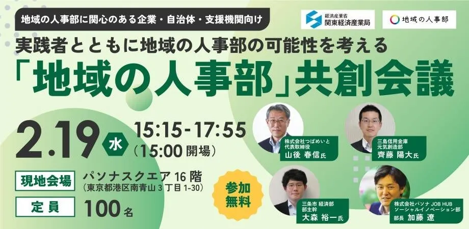 少子高齢化に伴う生産年齢人口の減少が深刻な日本。その中で、地域社会の活性化を目的とした「地方創生2.0」が提唱され、企業や自治体、教育機関、金融機関、メディアなどが連携して地域の未来を作る人づくりの重要性が叫ばれています。これに呼応して、株式会社パソナJOB HUBが主催する「『地域の人事部』共創会議」が、2025年2月19日(水)に東京・南青山のPASONA SQUAREで開催されます。