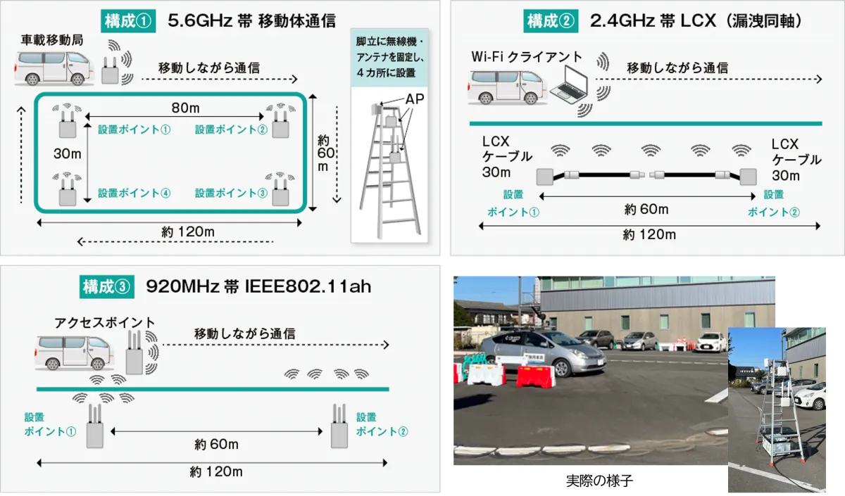 この実証実験では以下の3つの通信方式が検証されました: