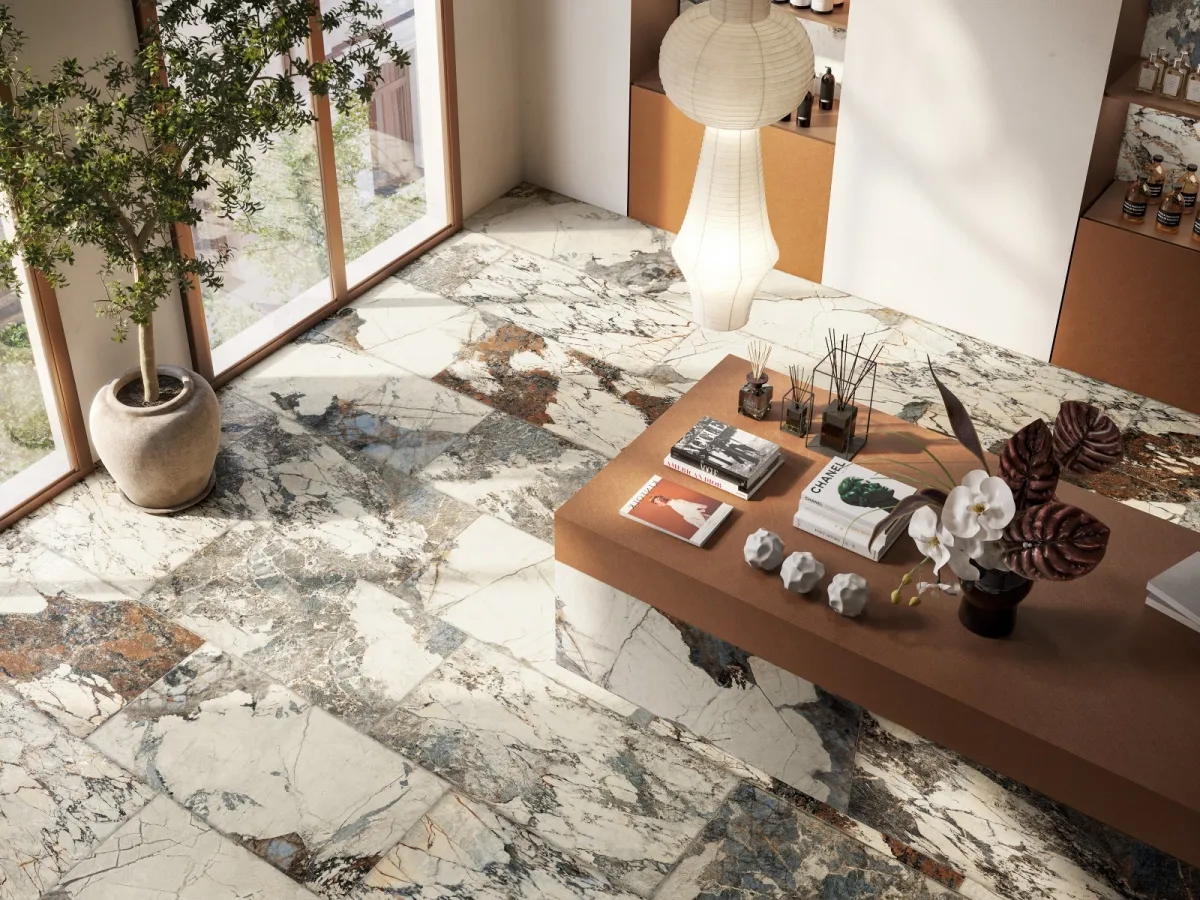 - - 大判・薄型タイル:圧倒的なサイズ感でダイナミックな雰囲気を演出(9シリーズ)。