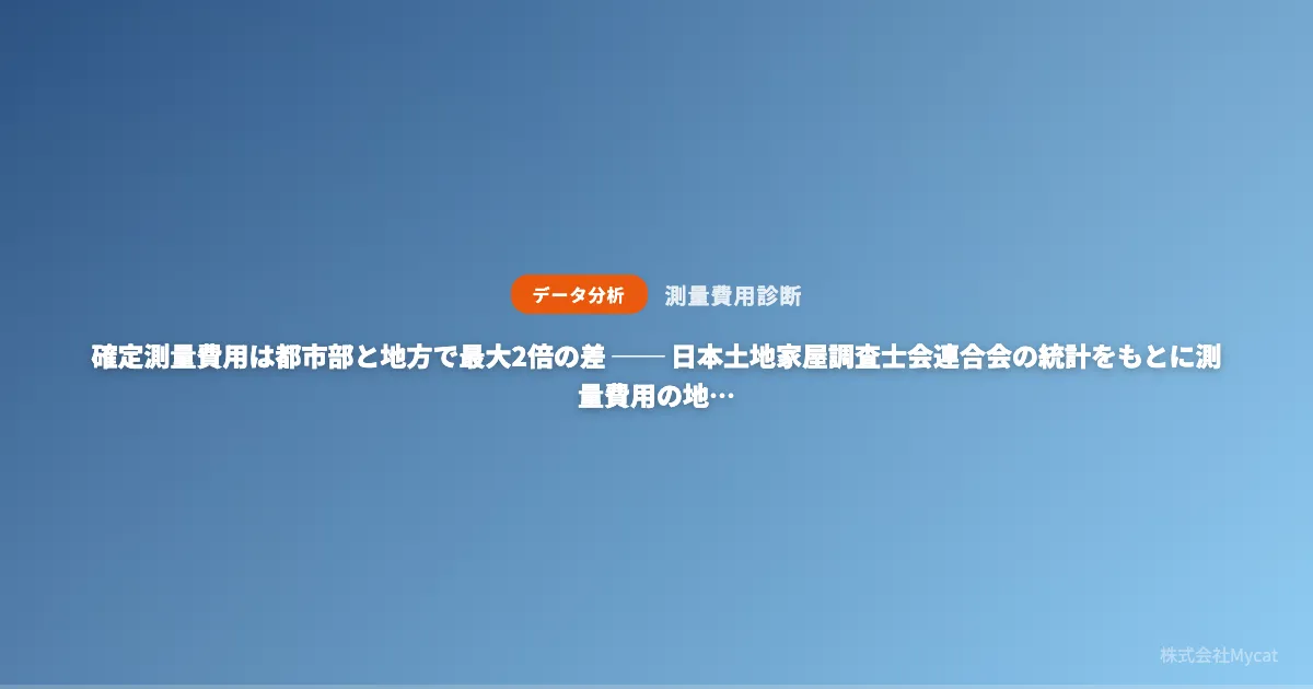 最近の研究によると、確定測量にかかる費用が都市部と地方で最大2倍の差があることが分かりました。この事実は、日本土地家屋調査士会連合会が発表した報酬統計に基づいています。特に、株式会社Mycatがこのデータを活用して、測量費用の診断サービスに新たな機能を追加する予定であることも注目されます。