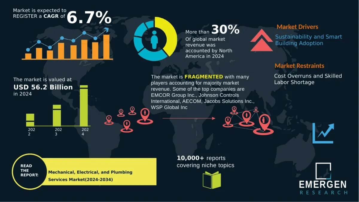 最近の調査によれば、MEPサービス市場は2024年までに562億米ドルに達し、年平均成長率(CAGR)は6.7%に達する見込みです。特にアジア太平洋地域は2024年に33.4%の市場シェアを獲得する見通しで、都市化やインフラ投資が主要な成長因子となっています。