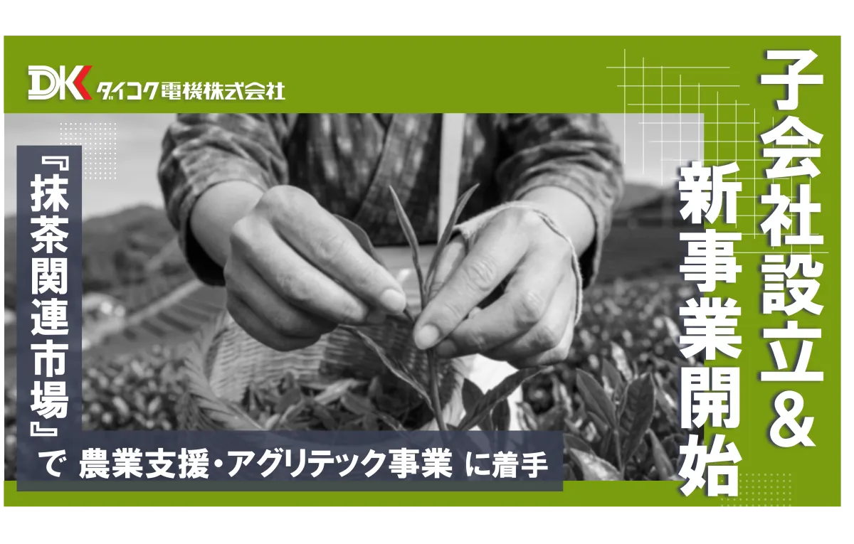 ダイコク電機はこの機会を捉え、抹茶関連市場への新規参入を決意。子会社を設立し、農業支援及びアグリテック事業を通じて碾茶の生産現場における問題解決に取り組むとしています。