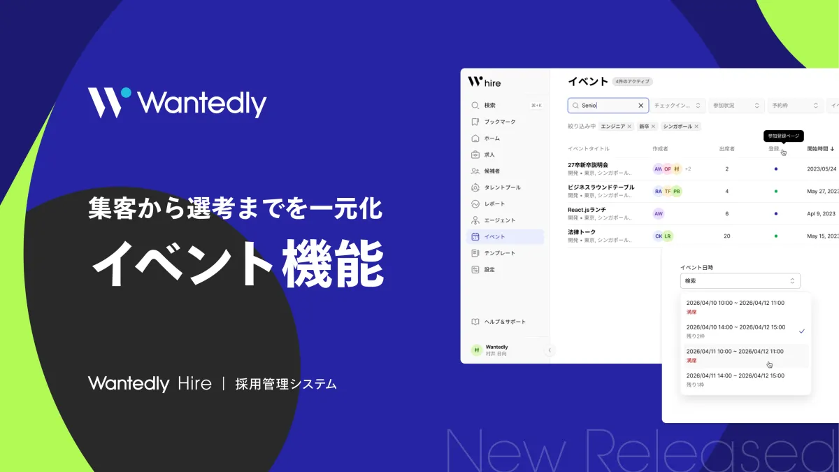 ウォンテッドリー株式会社が提供する次世代型採用管理システム「Wantedly Hire」に、新たに「イベント機能」が追加されました。この機能により、採用イベントの管理がかつてないほどスムーズになります。