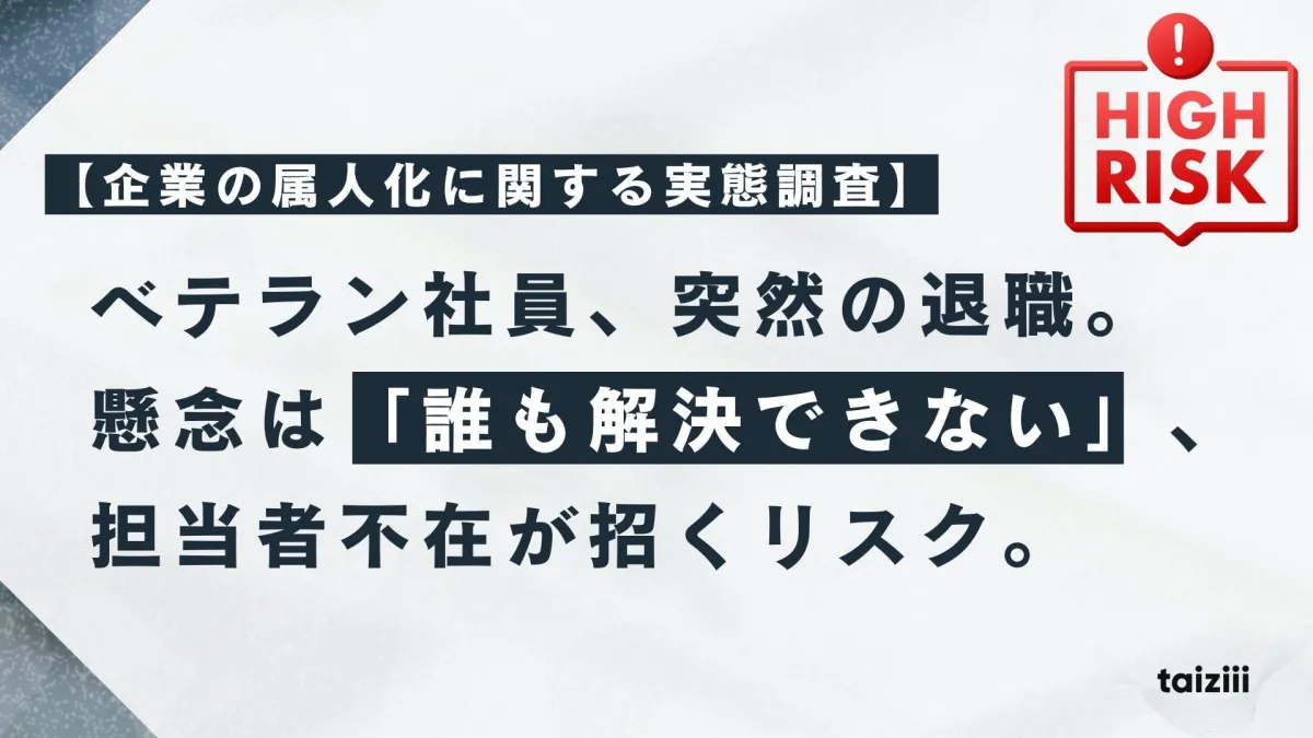 このことから、企業は特定の個人への依存による事業運営の不安定さを認識する必要があります。多くの企業が「この人がいれば大丈夫」という安心感を持っていますが、その人がいなくなることへの危機感も同時に持つべきです。このような観点から、ベテラン社員の退職は単なる人材の喪失に留まらず、事業存続そのものを問われる深刻な問題であることが明らかになりました。