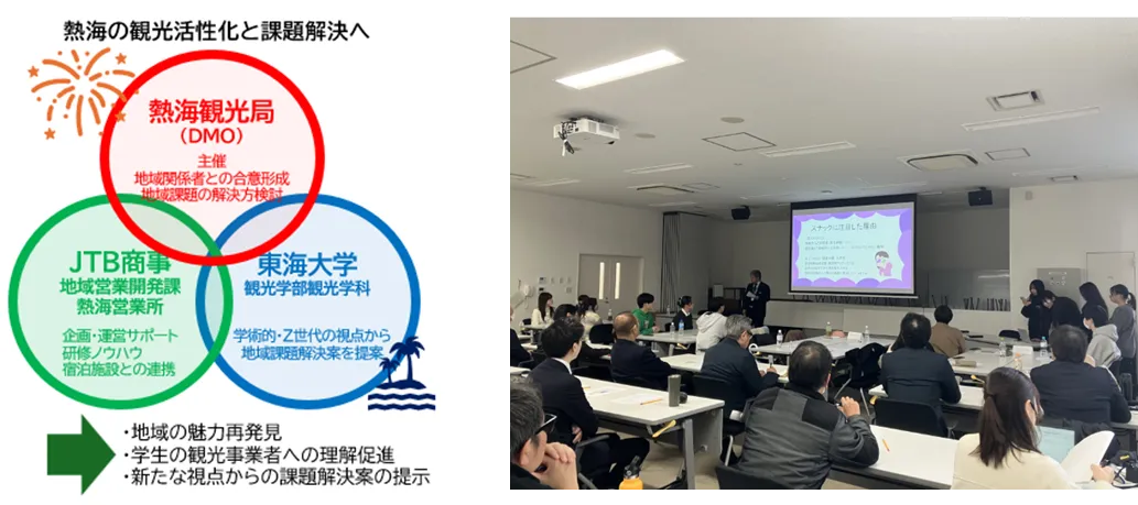 2025年11月16日から12月14日まで、株式会社JTB商事が主催する産官学連携の観光研修が熱海市で実施されました。このプロジェクトは、熱海観光局と協力し、東海大学観光学部の学生が地域の観光課題に取り組むもので、なかでもZ世代の視点を大切にしています。