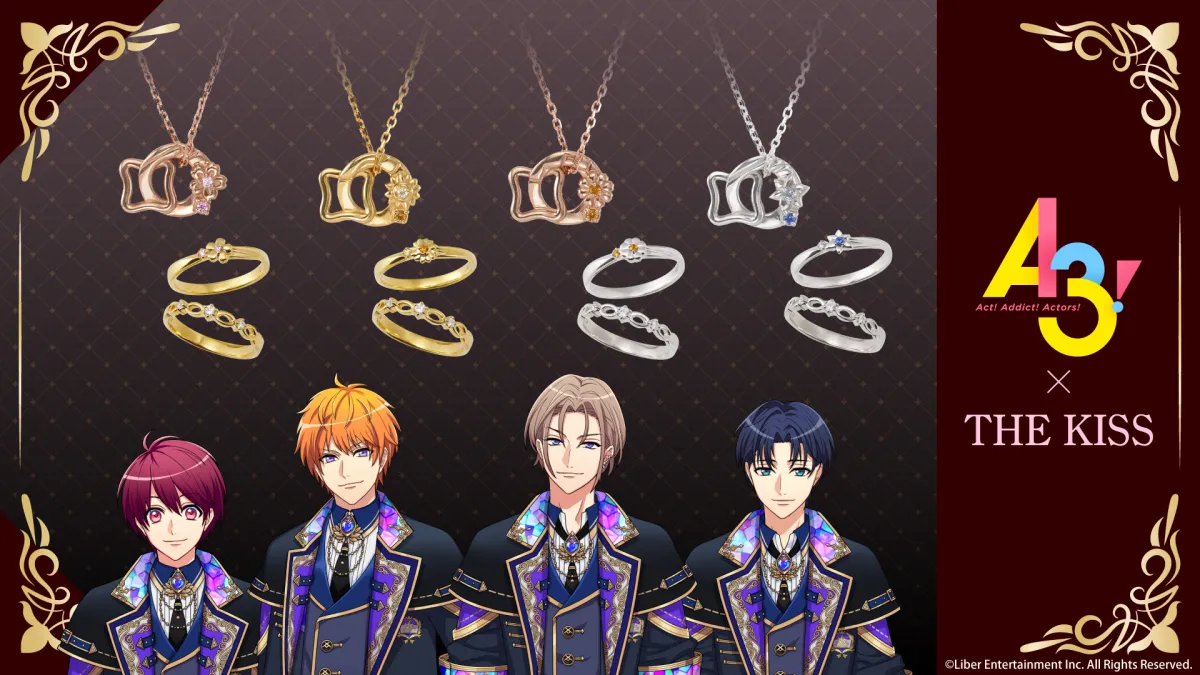 『A3!』と人気ジュエリーブランドTHE KISSのコラボレーションによる、8周年記念ジュエリーの受注販売が開始されました。受注期間は2023年3月13日から4月11日までで、ファンにとって特別なこのアイテムを手に入れるチャンスです。
