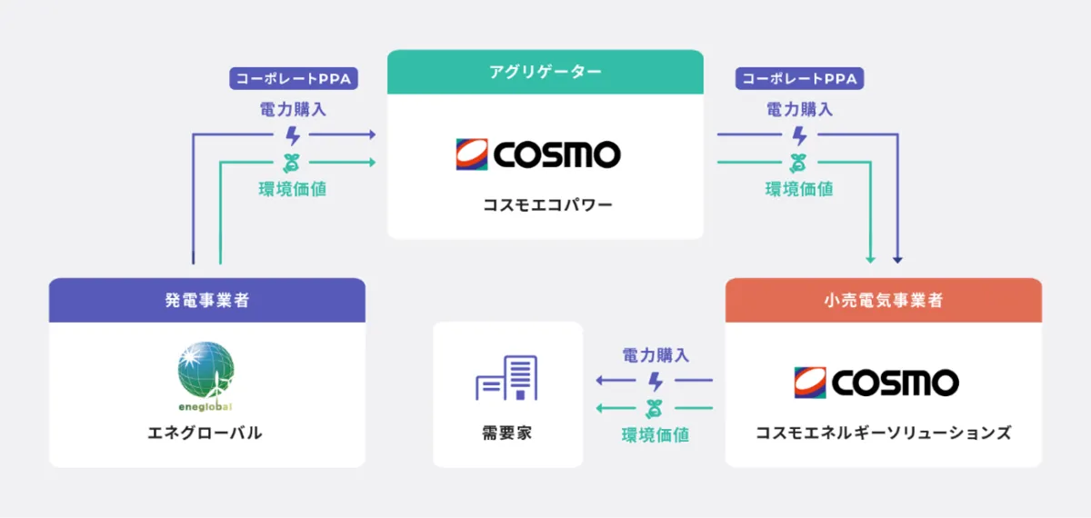 2023年、コスモエネルギーホールディングスのグループ会社であるコスモエコパワーが、エネグローバルとMOU(覚書)による契約を締結しました。これはFIP太陽光発電所を対象としたフィジカルPPAの導入です。この契約により、コスモエコパワーはエネグローバルが管理する7か所の太陽光発電所から約16年にわたり、再生可能エネルギーを受け取ることになります。これにより、環境負担の軽減が期待されています。