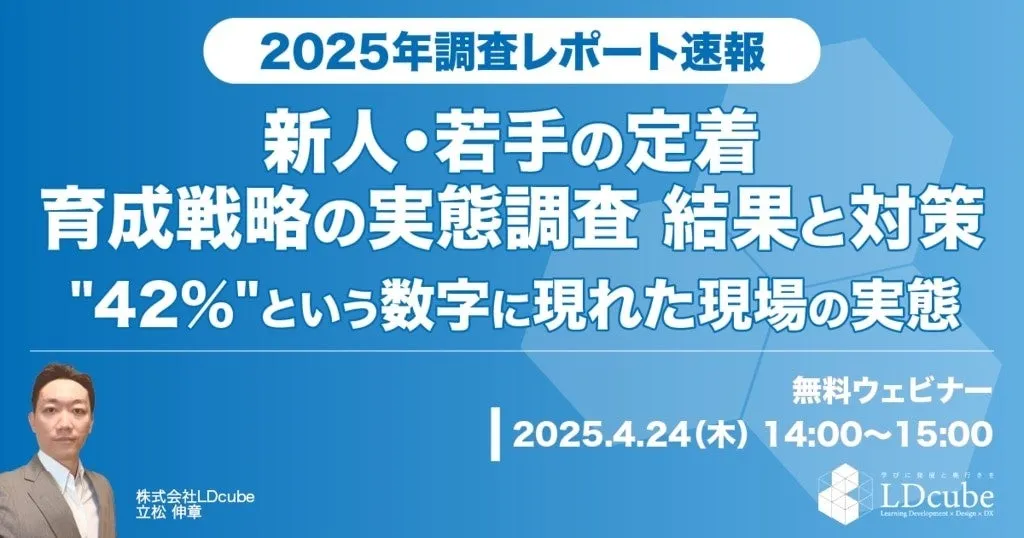 近年、多くの企業が新人社員や若手社員の定着に関する課題を抱えています。株式会社LDcubeは、2025年に向けた「新人・若手の定着~育成戦略に関する調査」を実施し、その結果を元にしたウェビナーを開催することを発表しました。ウェビナーは、4月24日に行われ、無料で参加が可能です。