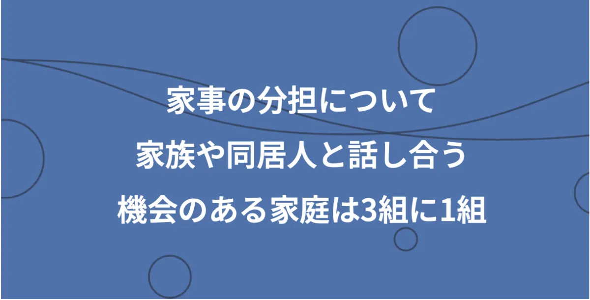 この調査によると、家庭における家事の中でも「食後の後片付け」を面倒に感じる人は6割以上に達しています。これは、食事に関する家事が多くの人にとって大きな負担になっていることを示しています。また、家事分担については、家族や同居人と話し合う機会がない家庭が3組に2組にのぼり、多くの家庭が負担を感じながらも、具体的な解決策を講じていない実態も浮かび上がっています。