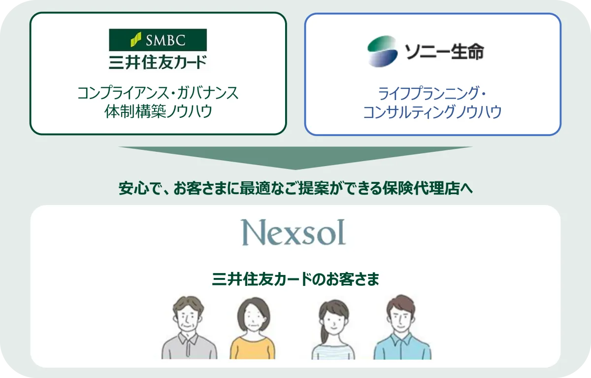 Nexsolは全国に5つの拠点を有し、様々な保険商品を取り扱っている乗合保険代理店として、顧客のライフプランに基づくコンサルティングを行っています。この提携により、三井住友カードとソニー生命の強みを生かして、Nexsolの成長を促進させることが目指されています。
