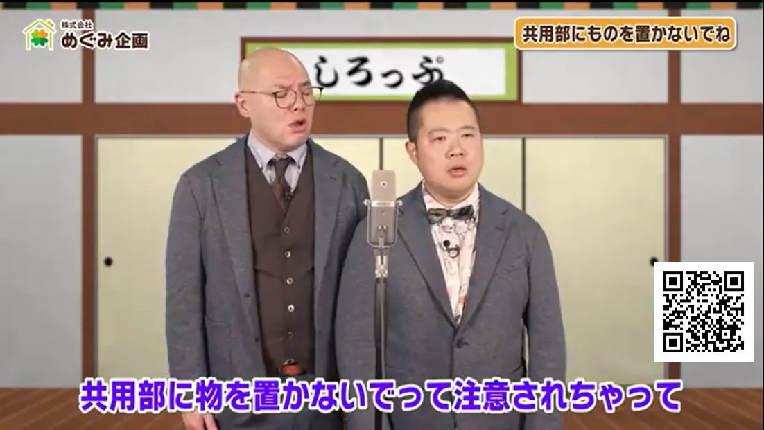 しろっぷのコント形式での解説は、入居者が物件内での生活上の注意点を笑いながら学ぶことを可能にします。楽しいコンテンツは記憶に残りやすく、注意点を正確に理解する手助けをしてくれます。具体的には、「共用部に物を置かないで」という形で、賃貸生活におけるルールをコミカルに伝える動画が作成されており、視聴者は身近に感じ、自らの生活に引き寄せて考えることができるように工夫されています。