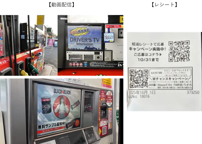 DRIVERS TVは、全国のセルフガソリンスタンドの給油機に設置されたモニターを利用し、音声がオンの状態で動画広告を流すメディアです。ドライバーを主なターゲットとしたこの媒体は、仕組み的に高い視認性を保つ特徴があり、顧客がガソリンスタンドに立ち寄るタイミングを利用したリーチが可能です。動画視聴後の再生数も計測できるため、施策の効果を数値で把握することができます。さらに、給油時に発行されるレシートにQRコードを載せることでアンケート調査を実施し、リアルな体験を推進しています。