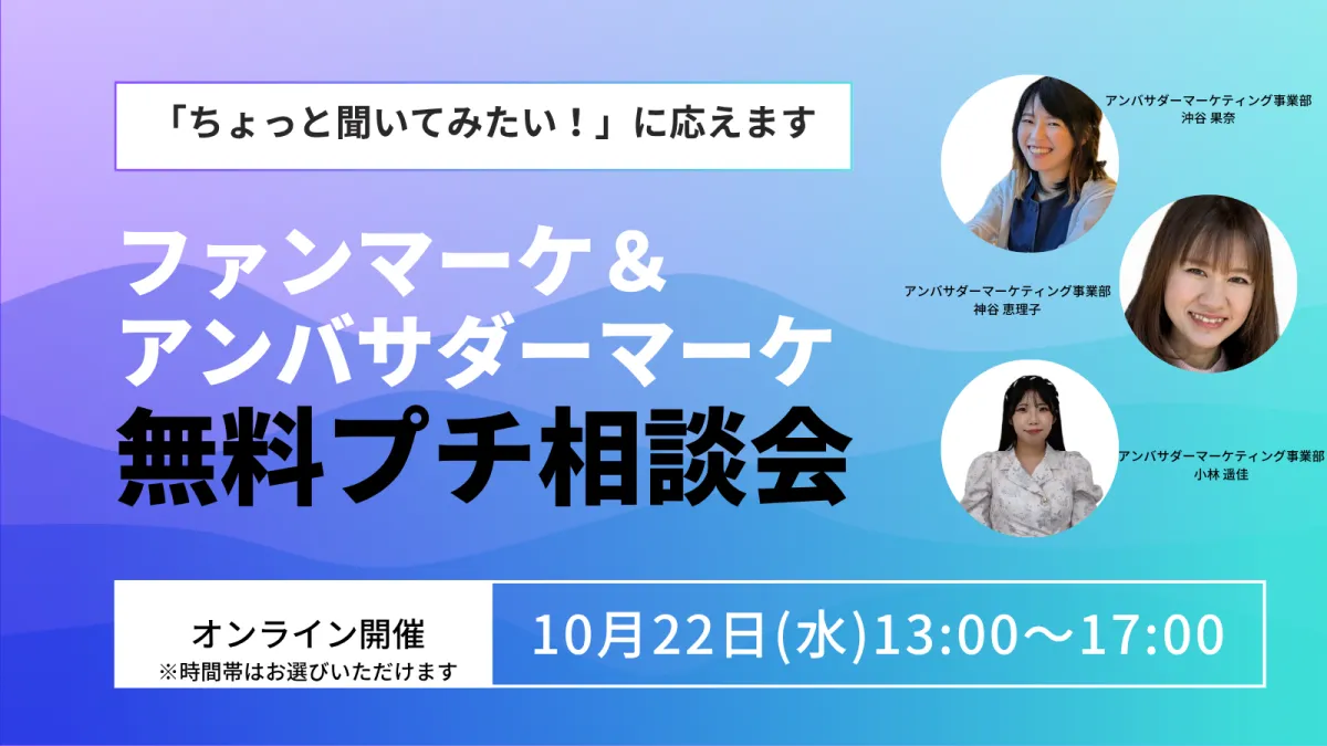 アジャイルメディア・ネットワーク株式会社(AMN)は、ブランドのファン育成を専門に手がける企業で、今回は「ファンマーケ&アンバサダーマーケ無料プチ相談会」を開催します。本企画は、ブランドにおけるファンとの関係構築に関心を持つ方々に向けて、オンラインでの個別相談を提供するものです。