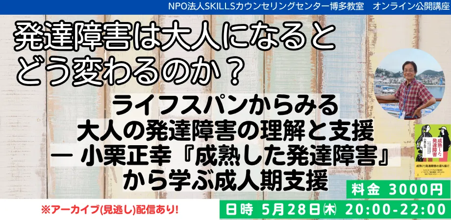 この度、5月28日(木)にZOOMを通じて行われるオンライン研修で、小栗正幸氏を講師に迎え、発達障害に対する新たな視点を提供します。小栗氏は特別支援教育ネットの代表として、多年にわたる発達障害の臨床経験をもとに、成人期の理解と支援の視点について考察します。