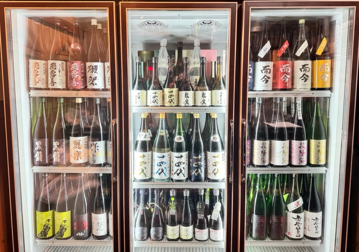 提供される日本酒は、十四代、而今、花陽浴、飛露喜、獺祭をはじめ、黒龍、写楽、鳳凰美田、作、東洋美人、寒菊、楽器正宗、赤武、産土、風の森など、全15種類です。いずれも各100mlでの提供となり、飲み比べではなく、全種類を自由に楽しむことができるのが最大の魅力です。