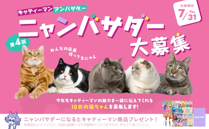 2025年7月18日から、ペットフードで知られるドギーマンハヤシ株式会社が「第4期ニャンバサダー」の募集を開始します。今回は、キャティーマンの魅力を広めるために役立つ、愛猫のアンバサダーを10匹募集します。この機会に、大好きな愛猫をキャティーマンの顔にしてみませんか?