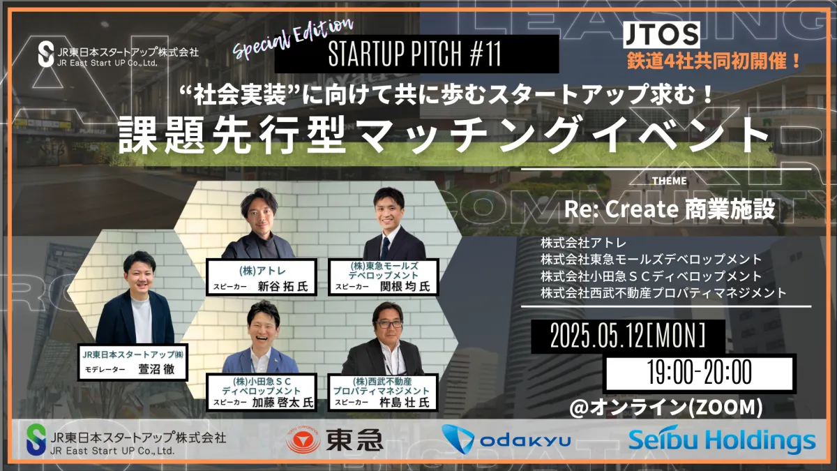 2025年5月12日、JR東日本スタートアップ、東急、小田急電鉄、西武ホールディングスの4社が日本で初めてとなる鉄道横断型の課題先行型マッチングイベント「STARTUP PITCH#11 with JTOS」を開催します。このイベントは、スタートアップ企業と鉄道の課題解決を目指すもので、新しい商業施設のあり方を探求する重要な機会となるでしょう。