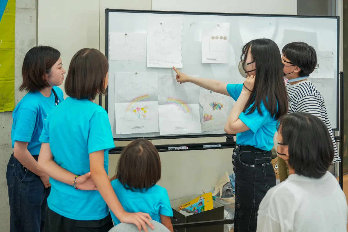 「シャイン・オン!コミュニティ」は、退院した子どもたちの「病気と闘っている仲間を勇気づけたい」という願いを実現すべく、様々な企画を推進しています。まずは、昨年から行っているチャリティTシャツの制作。今年の夏には、子どもたちが集まりアイディアを出し合うことで、Tシャツデザインを決定しました。これにより、彼らの創造力が形となることを目指しています。