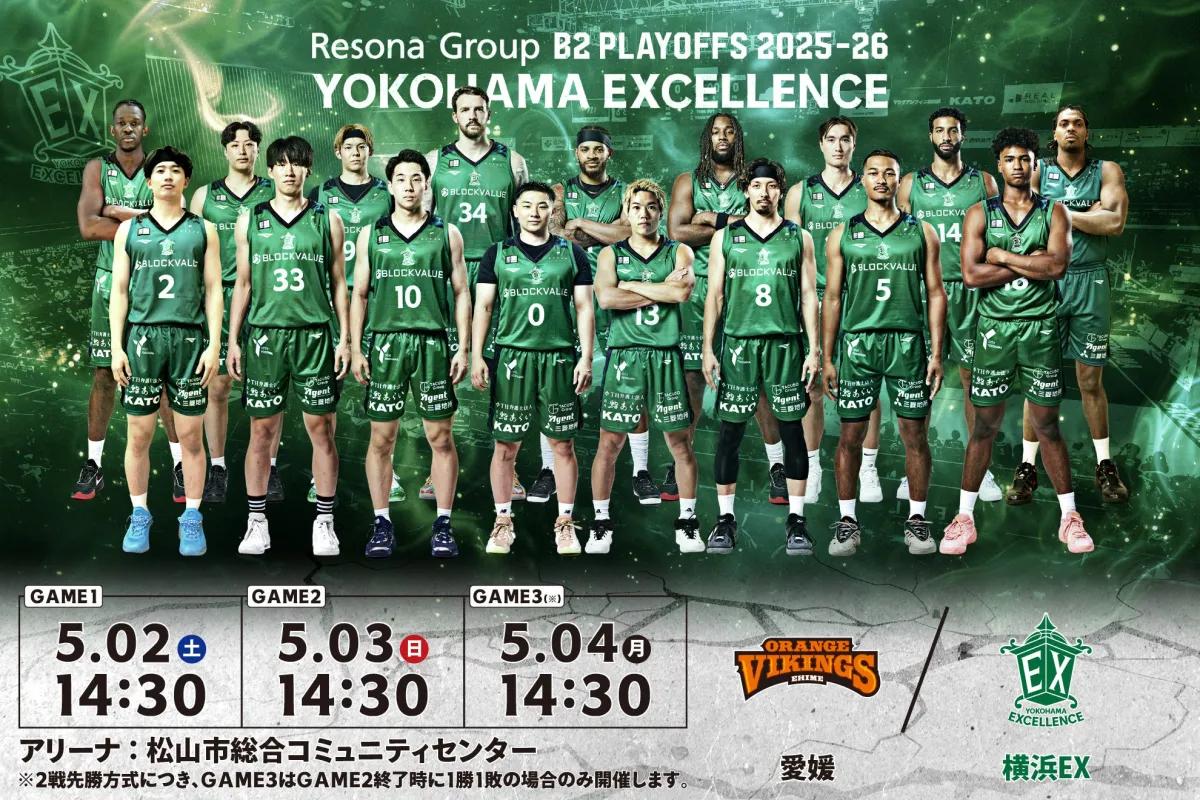 横浜エクセレンスが「りそなグループ B.LEAGUE 2025-26 B2リーグ戦」の舞台で新たな挑戦に乗り出します。この度、本日の試合結果を受けて、ついに「りそなグループ B2 PLAYOFFS 2025-26」の組み合わせが決定しました。B2の舞台では初めての大きな舞台で、クラブは「B2優勝」を目指して一丸となっています!