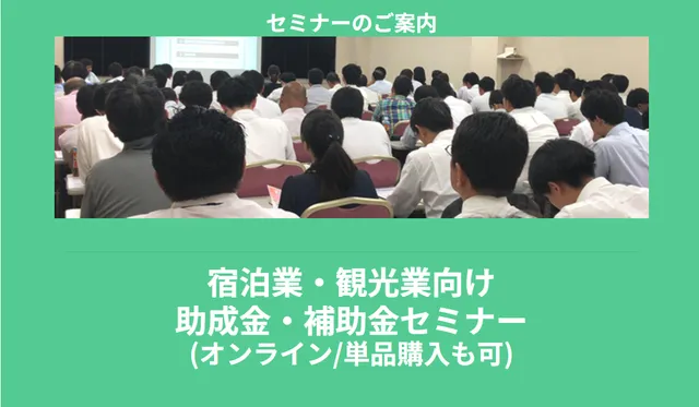 宿泊業・観光業向け助成金・補助金セミナー開催のお知らせ