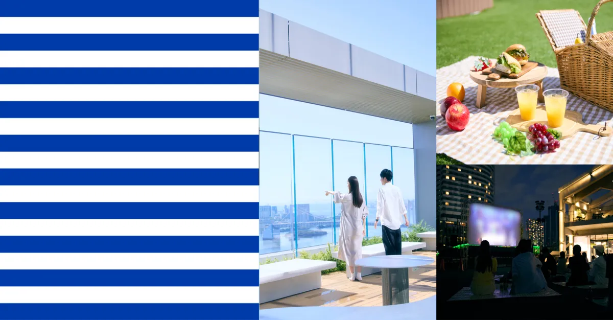 さらに、地上約140メートルから東京ベイエリアを一望できる展望テラス「BLUE SKY LOUNGE」も特別に開放されます。これは普段、オフィス利用者のみがアクセスできる特別な空間で、130mの高さから眺める風景は、圧倒的な美しさを誇ります。