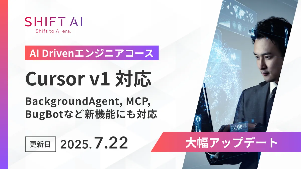 日本のAI業界をけん引する株式会社SHIFT AIが、法人向けリスキリングサービス「SHIFT AI for Biz」のエンジニアコースを2025年7月22日に大幅にアップデートしました。このサービスは、AI技術の進化に対応し、エンジニアが最新の開発環境で効率的にスキルを身につけられることを目指しています。