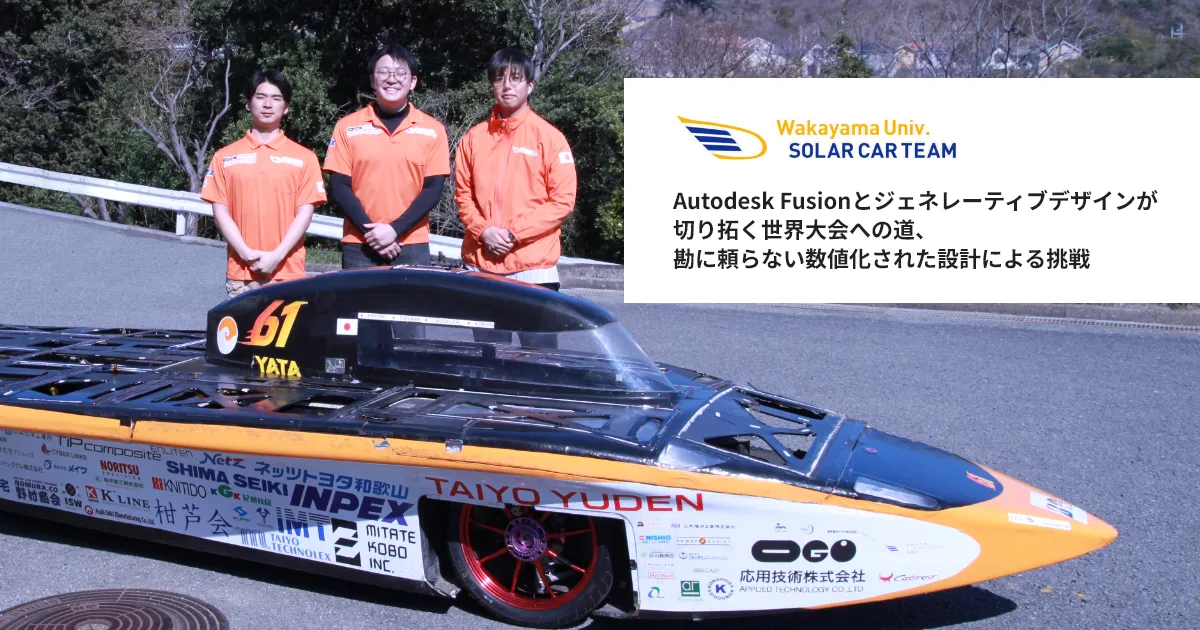 応用技術株式会社は、大阪市北区に本社を置く企業で、1984年からものづくり支援やエンジニアリングサービス事業を展開してきました。和歌山大学ソーラーカープロジェクトには、2023年の大会から従来の設計方法を革新するため、Autodesk Fusionを導入し、デジタルトランスフォーメーション(DX)の伴走支援を行っています。この革新により、従来の経験則に依存せず、数値に基づく高度な設計プロセスに変わりました。