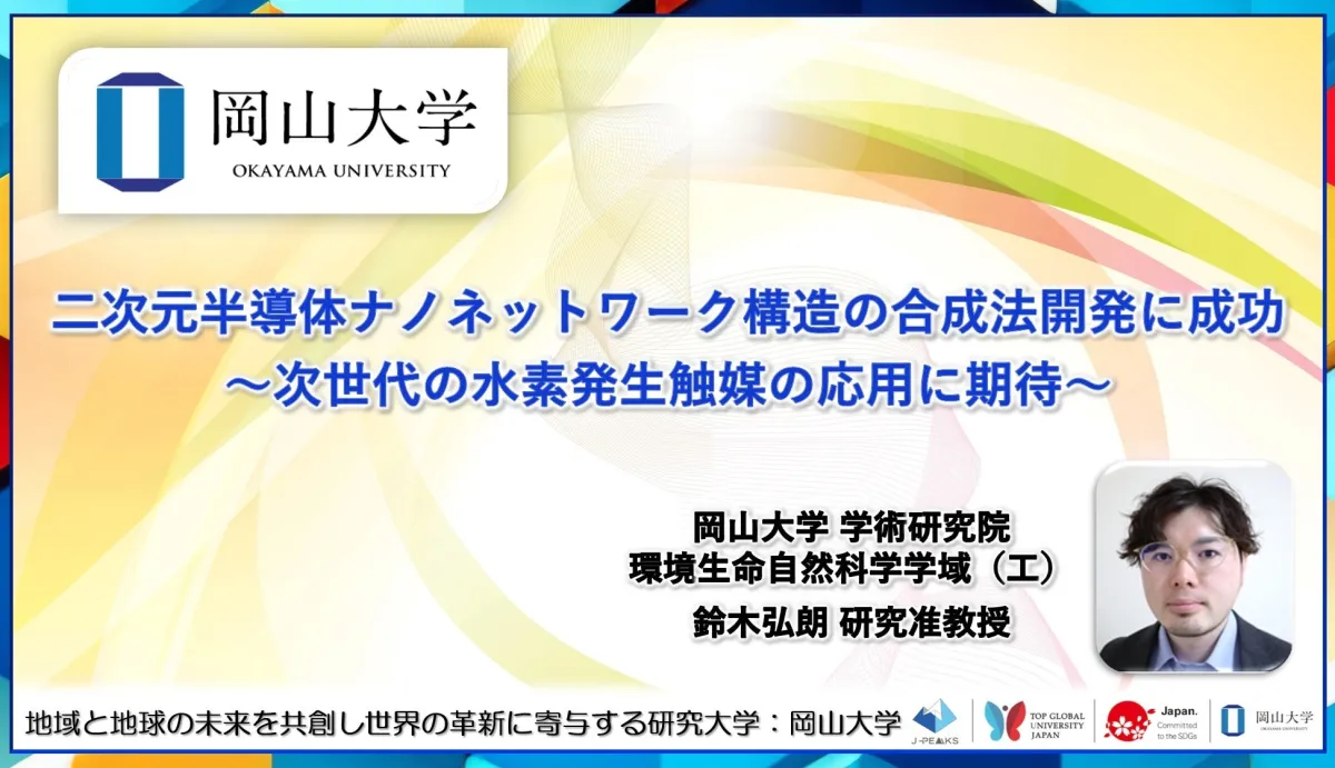 岡山大学をはじめ、名古屋工業大学、名古屋大学、金沢大学、慶應義塾大学といった研究機関による共同研究が、二次元半導体材料として注目される遷移金属ダイカルコゲナイド(TMDC)の新しい合成手法を確立しました。この手法は、特に水素発生触媒としての応用に大きな期待が寄せられており、今後のエネルギー技術の発展に寄与する可能性があります。