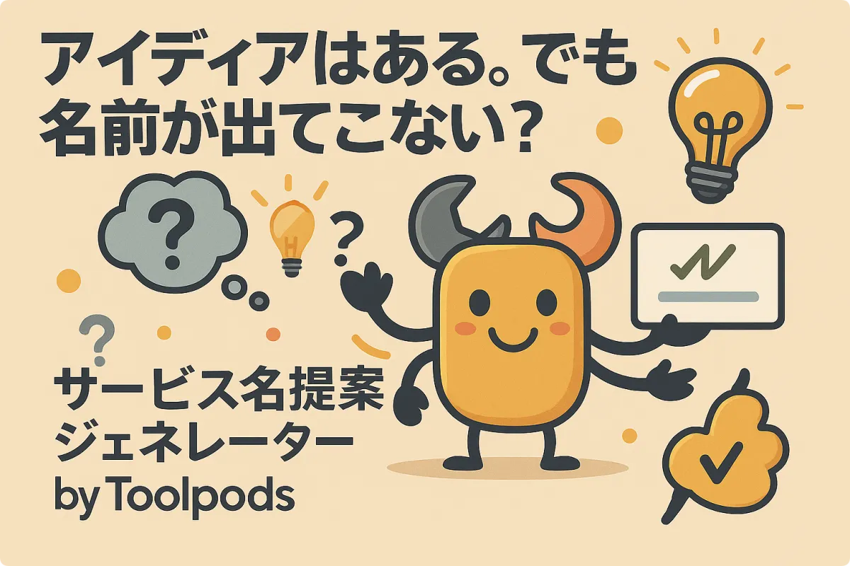 起業家や個人開発者にとって、多くの時間がネーミング作業に費やされることがあると思います。「どんな名前にしたらいいのか?」と悩むことも少なくありません。そんな時に役立つのが、新たに登場した無料ツール「サービス名提案ジェネレーター by Toolpods」です。これにより、あなたのアイデアを元に、AIが瞬時に魅力的なネーミング候補を提案してくれるのです。これまでのネーミングに費やしていた膨大な時間が、もっとクリエイティブな作業に振り向けられるかもしれません。