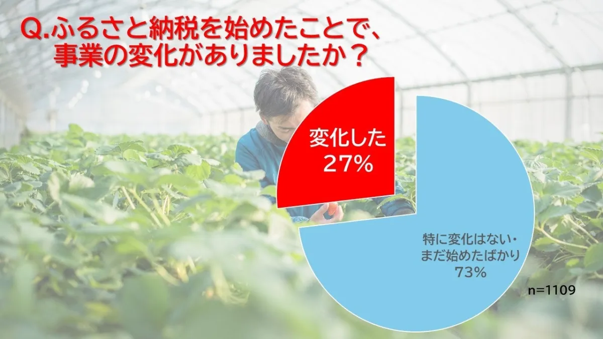一方、73%の事業者は「特に変化はない」と回答しましたが、その背後には期待通りの成果が得られないこともあるようです。これは、ふるさと納税の取り組みに対する準備や戦略が重要であることを示しています。