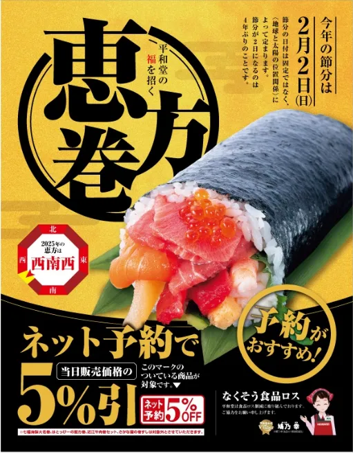 株式会社平和堂は、2025年の節分に向けて、全国の平和堂・エール160店舗にて特別な恵方巻の予約を承っています。今年の節分は2月2日の日曜日。この機会に「ちょっといいものを楽しみたい」というニーズに応える様々な商品がラインナップされています。