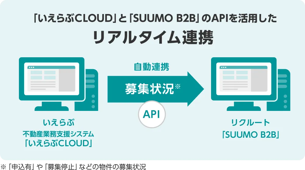「いえらぶCLOUD」は、賃貸、売買、管理に対応したオールインワンの不動産業務支援クラウドシステムです。全国で1万7,000社以上の不動産会社に導入されており、その利便性から多くの企業に支持されています。このデータ連携により、物件の募集状況に関する情報が自動的に『SUUMO B2B』に反映されます。「申込有」や「募集停止」などの最新情報がリアルタイムで更新され、業務の手間を大幅に削減できるようになるのです。