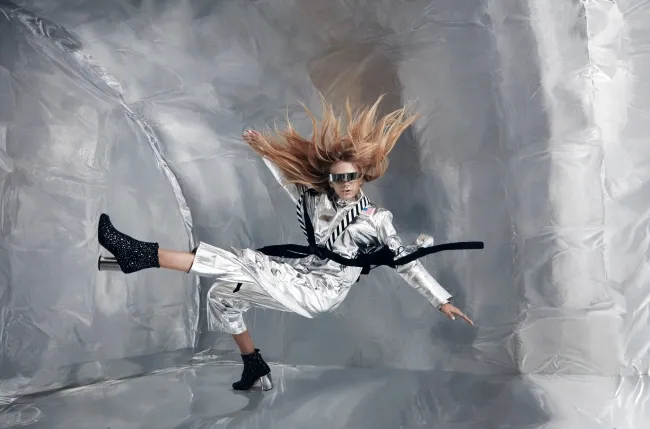 ファッションモデルには、国際的に活動するスタヴ ストラスコさんが起用され、ニューヨークからは著名なスタイリストやメイクアップアーティストが駆けつけました。彼らは無重力空間にふさわしい、近未来的なルックを創り上げました。