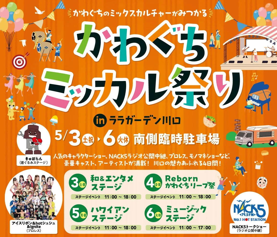 埼玉県川口市に位置する三井ショッピングパーク、ララガーデン川口では、ゴールデンウィークの特別イベント「かわぐちミッカル祭り」が5月3日から6日まで開催されます。家族全員が楽しめる文化体験が盛りだくさんのこの4日間、皆さんを待っています!